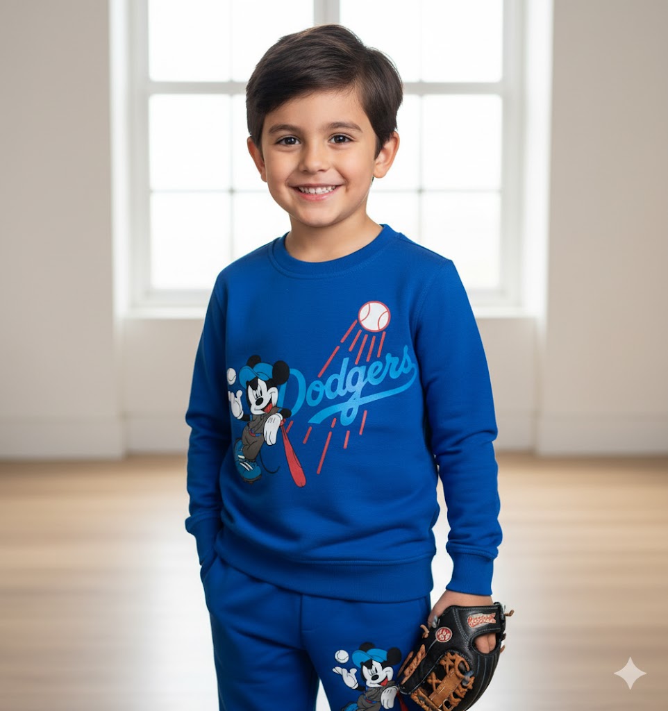 Bring playful energy and team spirit to your child’s wardrobe with this officially licensed Mickey Mouse x Dodgers Kids’ Tracksuit. Designed for comfort and style, this coordinated set features a vibrant Dodgers-blue colorway and charming graphics of Mickey Mouse stepping up to the plate perfect for young baseball fans.